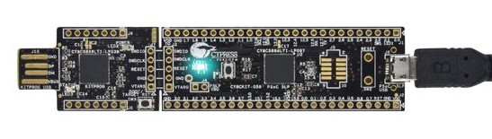 A low-cost platform for prototyping products with the ARM® Cortex®-M3-based PSoC® 5LP, with a unique snap-away Programmer and Debugger on the USB connector.